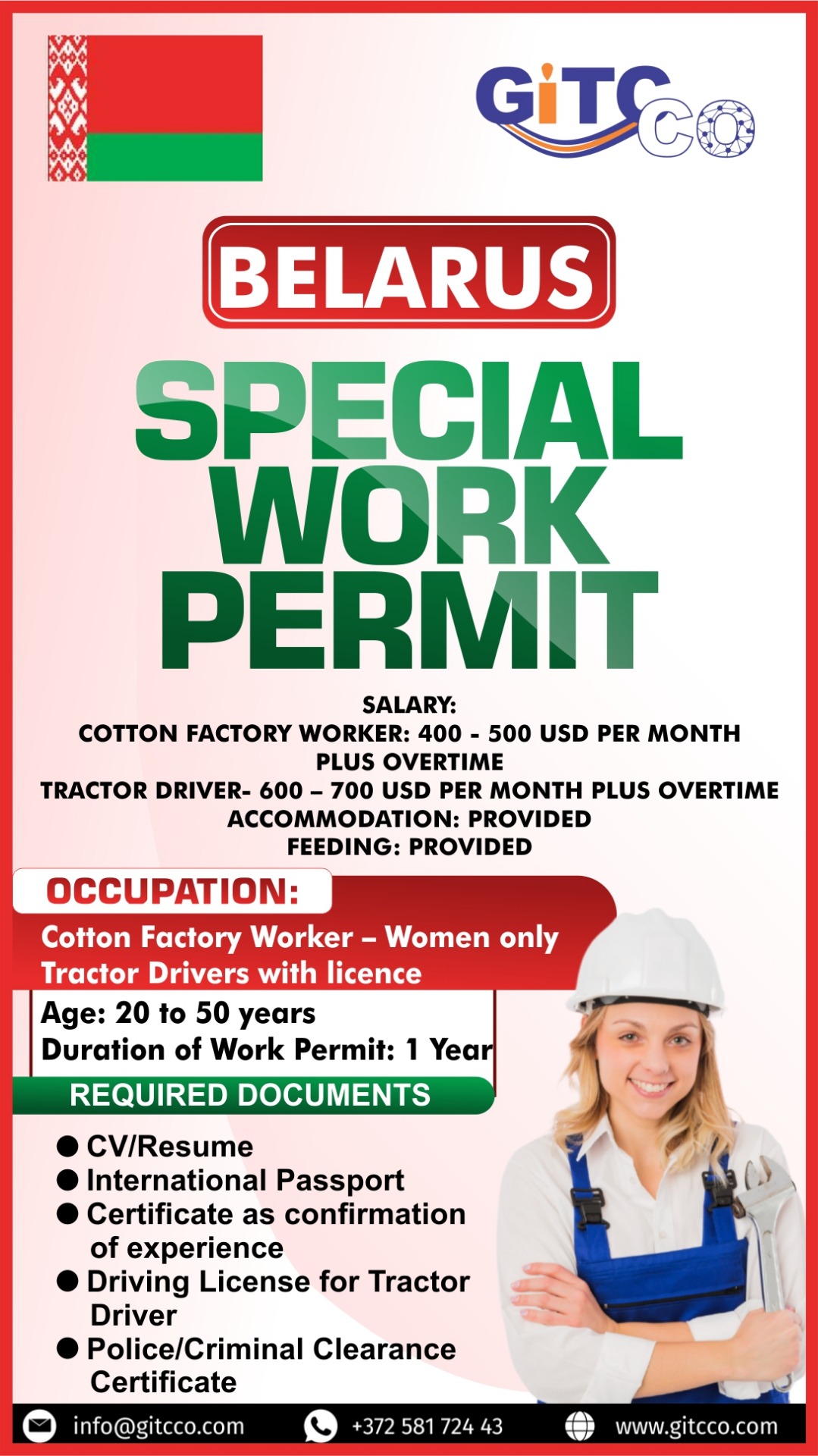 3. Complete application form on our website using this link: https://www.gitcco.com/client-onboarding/ or Send the compiled documents to info@gitcco.com with the subject Belarus Special Work - (Occupation that you are applying for)