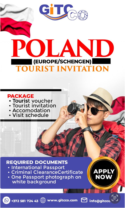 3. Complete application form on our website using this link: https://www.gitcco.com/client-onboarding/ or Send the compiled documents to info@gitcco.com with the subject Poland tourist invitation - (Package that you are applying for)